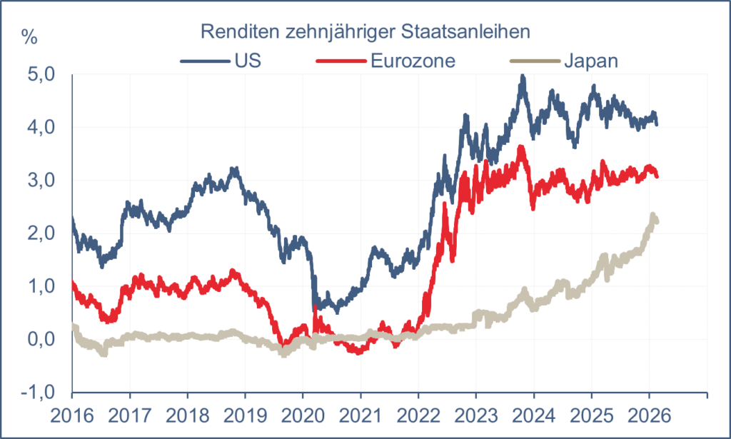 - Expansive Fiskalpolitiken (in den USA, Deutschland und Japan) dürften die Haushaltsdefizite weiter ausweiten.
