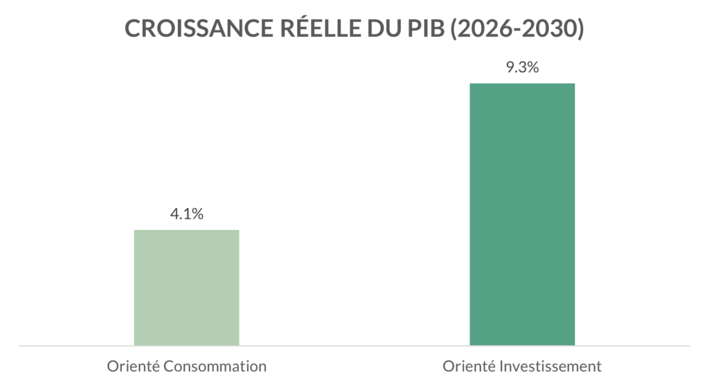L’Allemagne, en revanche, est surtout confrontée à une crise de croissance aiguë. Le gouvernement fédéral devrait contrer cette stagnation par des investissements ciblés et des mesures favorables à l’économie afin de renforcer à nouveau la compétitivité et la croissance économique future du pays. Selon le Conseil des experts économiques, l’utilisation du fonds spécial de 500 milliards d’euros pour les infrastructures et la protection du climat, destiné à moderniser les infrastructures publiques, à soutenir la décarbonisation et à relancer l’économie allemande, déterminera si l’Allemagne ne connaîtra qu’une dynamique de croissance à court terme ou si elle pourra augmenter durablement son potentiel de croissance1). En effet, les économistes craignent que les fonds supplémentaires ne soient utilisés pour des projets d’investissement existants afin de disposer de plus d’argent dans les budgets principaux pour d’autres projets, par exemple dans le domaine social. Cela entraînerait un endettement supplémentaire sans impulsion budgétaire durable. Dans son rapport de printemps, le Conseil des experts a comparé les effets possibles d’une utilisation du paquet d’infrastructures axée sur la consommation par rapport à une utilisation axée sur l’investissement.